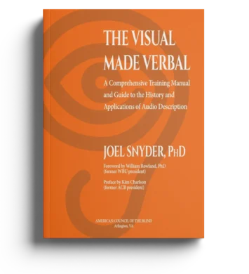Dr. Joel Snyder is perhaps best known internationally as one of the first “audio describers.” He’s a member of the Actors’ Equity Association, the American Federation of TV and Radio Artists, the Screen Actors Guild, and is a 20-year veteran arts specialist for the National Endowment for the Arts. He’s recorded for the Library of Congress and read privately for individuals who are blind.