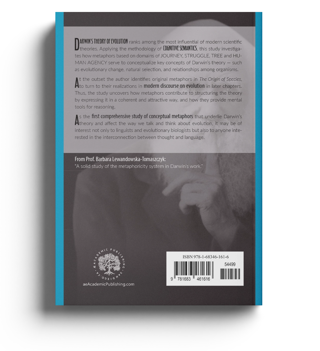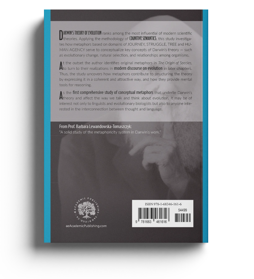 DARWIN’S THEORY OF EVOLUTION ranks among the most influential of modern scientific theories. Applying the methodology of COGNITIVE SEMANTICS , this study investigates how metaphors based on domains of JOURNEY, STRUGGLE, TREE and HUMAN AGENCY serve to conceptualize key concepts of Darwin’s theory — such as evolutionary change, natural selection, and relationships among organisms. At the outset the author identifies original metaphors in The Origin of Species, to turn to their realizations in modern discourse on evolution in later chapters. Thus, the study uncovers how metaphors contribute to structuring the theory by expressing it in a coherent and attractive way, and how they provide mental tools for reasoning. As the first comprehensive study of conceptual metaphors that underlie Darwin’s theory and affect the way we talk and think about evolution, it may be of interest not only to linguists and evolutionary biologists but also to anyone interested in the interconnection between thought and language.
