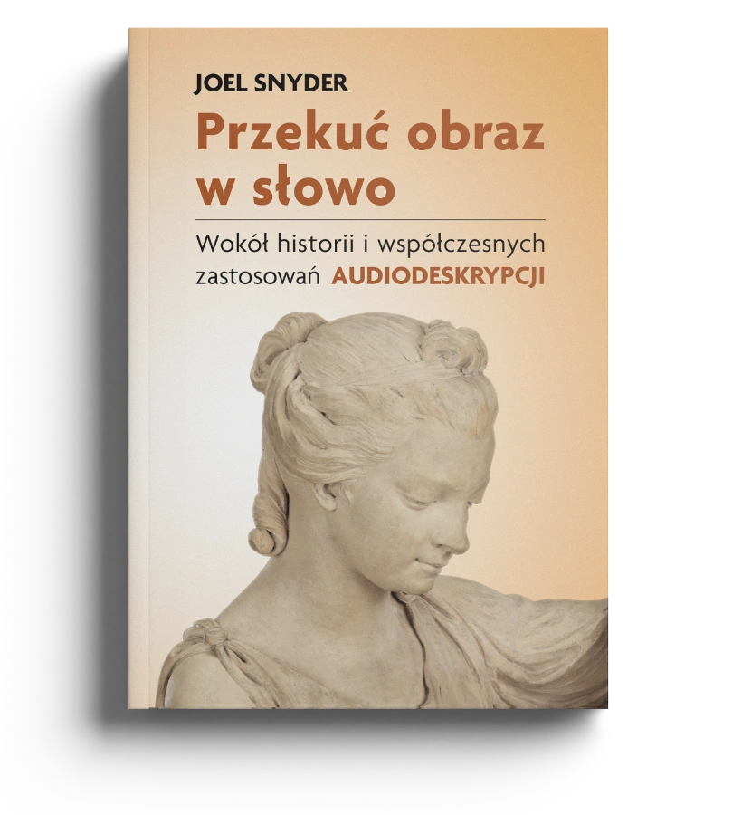 Oddajemy w ręce czytelników polski przekład książki Joela Snydera. Po angielsku ukazała się ona pod znaczącym tytułem The Visual Made Verbal, co przełożyliśmy jako Przekuć obraz w słowo. Ta znakomita pozycja ma szansę przybliżyć polskiemu czytelnikowi codzienność osoby niewidomej w Stanach Zjednoczonych. Niewidomej, ale nie wykluczonej. I – jak mawiał słynny trener Yogi Berra – tłumaczy, jak patrzeć, by widzieć. Przekładamy opowieść Joela Snydera o rozwoju audiodeskrypcji w Stanach Zjednoczonych i zażartej, skutecznej walce o zapewnienie ludziom z dysfunkcją wzroku możliwości lepszego życia na co dzień oraz dostępu do instytucji nieodłącznie związanych z samodzielnym funkcjonowaniem człowieka, a także do szeroko pojętych dóbr kultury, aby nikt już nigdy więcej nikogo nie zapytał: „Przepraszam, co pan robi w muzeum? Przecież pan nie widzi”.